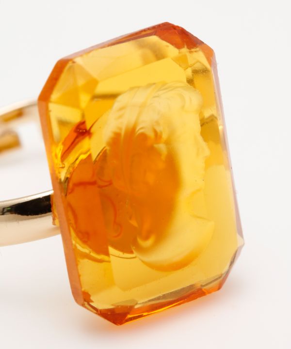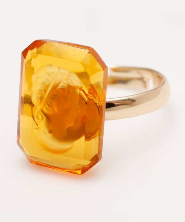 ドイツで作られたカメオガラスのリング。レトロで高級感のある色合いのガラスが指先を美しく演出してくれます。サイズ調節可能。