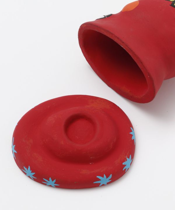 スティック香やコーン香がたける香立て。お部屋のインテリアとして楽しめるように、ユーモラスなカラベラの表情にいろいろな幸運を呼び込む祈りをこめました。インドの職人の手描きペイント。
