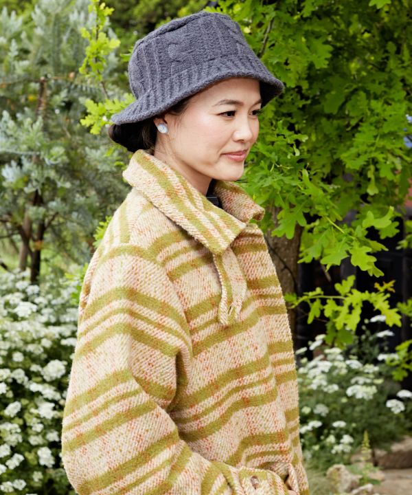 あたたかみのあるケーブル編みのニットハットです。浅めのデザインで、やわらかく伸びがある被り心地。きらりと光るメタルチップがアクセント。