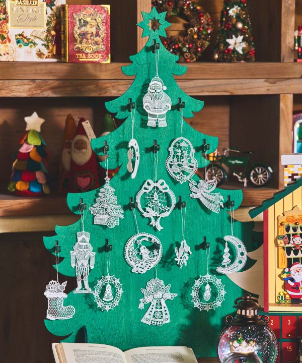 クリスマスキャンドルをかたどったレースオーナメント。ドイツ・フォクトランドの老舗VOGEL社から仕入れました。切り絵のような繊細で美しい模様は、少数の職人によって手作りされています。