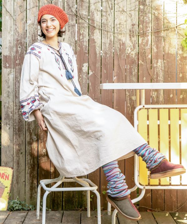 マジカルシリーズに新たにレッグウォーマーが登場。足元からエスニックを演出してみてはいかがでしょう。あえてみせなくてもスカートやワンピースの下に重ねて家でも外でも防寒できます。