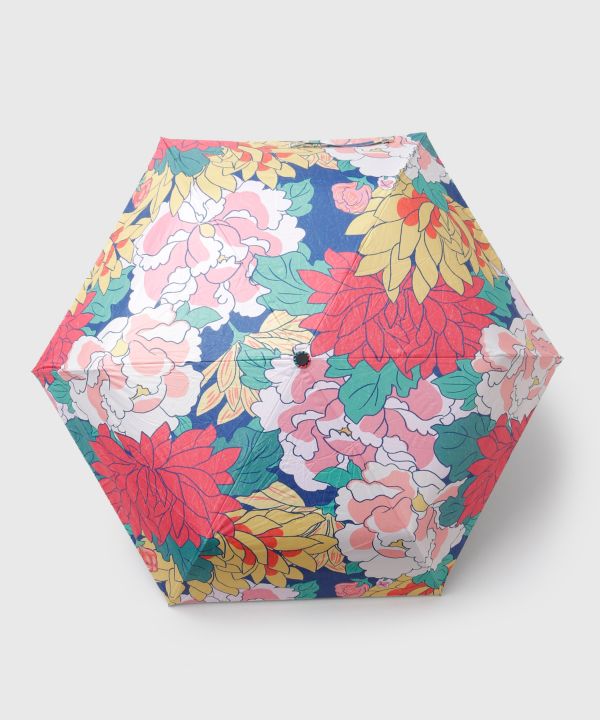 ワンタッチで開閉出来る、折り畳み式の晴雨兼用傘。日本の花々を現代流の色彩とデザインで表現しました。バンブー素材の持ち手が上品な印象。贈り物にもおすすめです。遮光率90%以上。