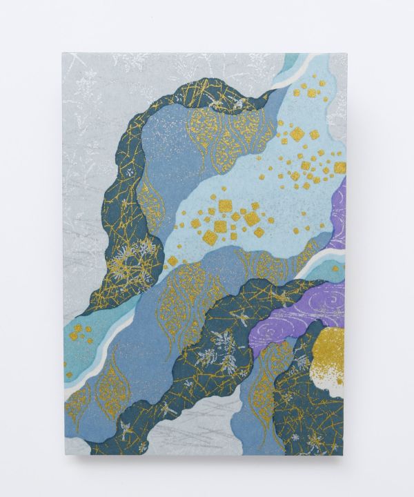 まるで金継ぎのように様々な和柄が継がれた、趣深い一冊。和柄には、「五穀豊穣」「開運福徳」「健康/長寿]といった祈りや想いが込められていると云われています。神社とお寺のどちらでもご使用頂けます。