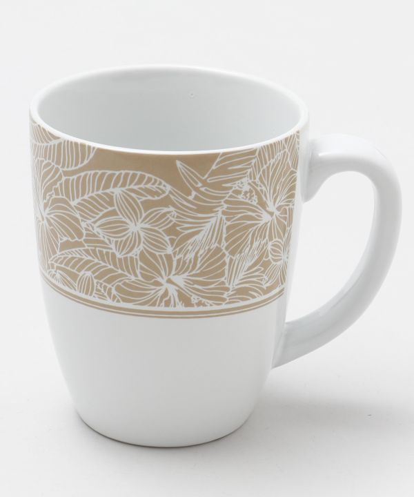 ハワイで「上品な美しさ」という意味を持つハイビスカス柄のマグカップ。上品な色柄でティータイムにぴったり。大切な人へのギフトにも。