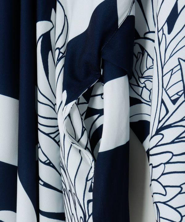 ゆったりとしたシルエットが特徴のワンピースです。柔らかく落ち感のある生地が身体のラインを美しく見せ、体型を選ばず快適に着用できます。美しい和花、菊の柄をシャープで大胆に描いたデザインがモードな印象を演出し、ポリエステル素材でお手入れも簡単です。ポケット付きで使いやすく、日常にも特別な日にも映える一枚です。