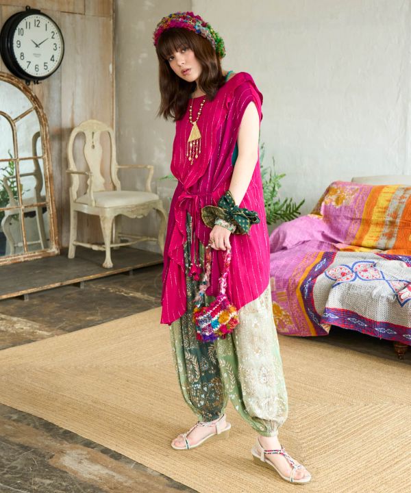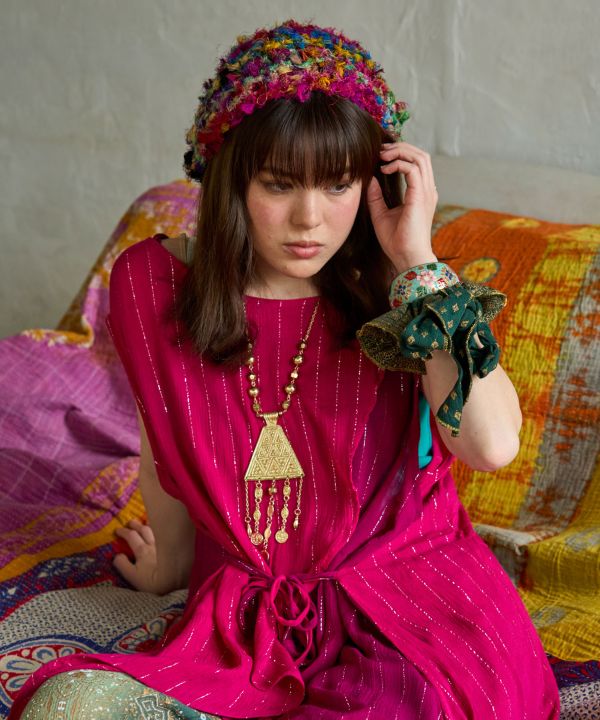 妖艶な色彩に心奪われる。トルコの町並みにあるタイルからインスパイアされたデザイン。ゴールドやシルバーの箔プリントが他にはない雰囲気を出してくれる。取り外しの出来る長めのリボンが、ヘアアレンジを自由自在に。毎日を自分らしく彩ろう。