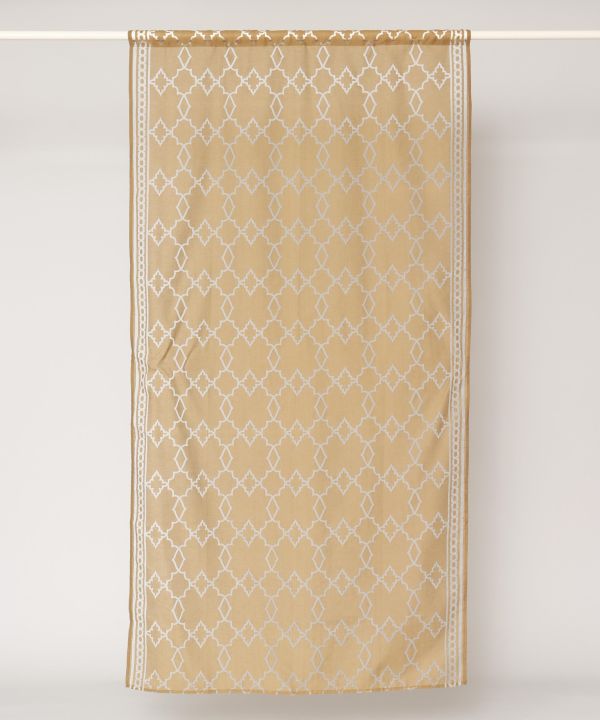 インド・ラジャスタン州タール砂漠にあるジョードプルからインスピレーションを得たオパール加工のカーテン。ジョードプルの建物は壁が青く「ブルーシティ」と呼ばれる。その魅惑的なブルーとタール砂漠の雄大なブラウンを色味で表現。柄はジョードプルのシンボルでもあるメヘラーンガル城の装飾をイメージ。重厚な世界観と抜け感のあるオパール加工が見事に合わさったデザインが魅力。長さが200cmあるので、少し大きな窓にも使用できます。