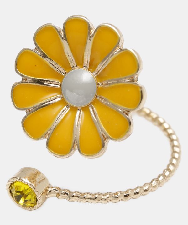 マーガレットのカラフルな色合いが目を惹くトゥーリング。きらりと輝くラインストーンとくるりと指に巻き付くデザインがポイント。マーガレットの花で想い人との運勢を占うように、密かなおまじないの意味が込められています。マーガレットの花言葉「恋占い」「私を忘れないで」といった意味もあります。