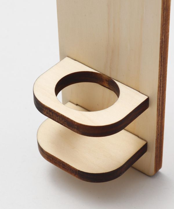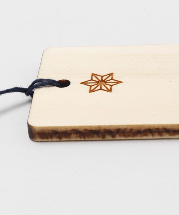 岩座オリジナルのアロマエアミスト(鎮守の森エアミスト)を収納できる壁飾り。本体部分は国産檜、糸は藍染めで染められています。