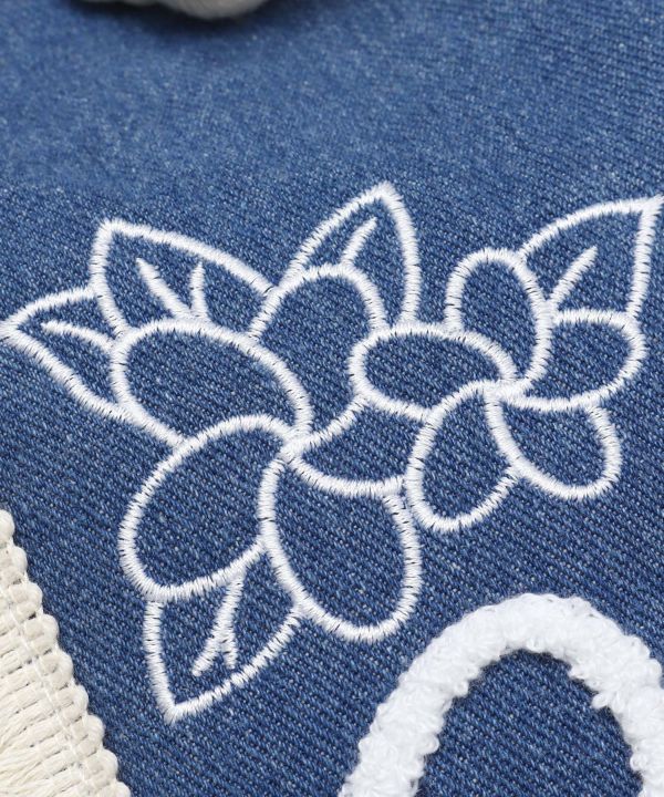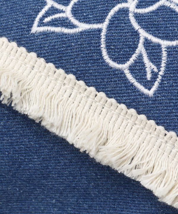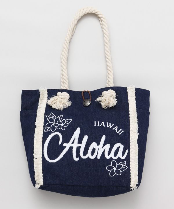 ビーチの散歩にもピッタリなデザインで、コンチョボタンがポイント。 内ポケット付いている為収納も抜群。ハワイの海辺を連想させるデニム色と相良刺しゅうが素敵なトートバッグ。