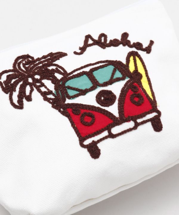 ハワイのモチーフをパッチワークで施したカラフルなポーチ。ちょうど良いサイズ感なので、小物入れやポーチとしても活用できます。便利な内ポケット付き。