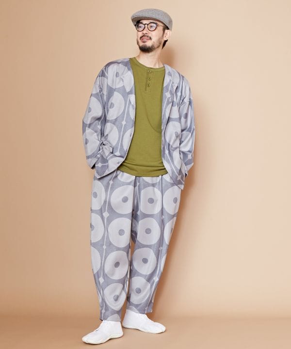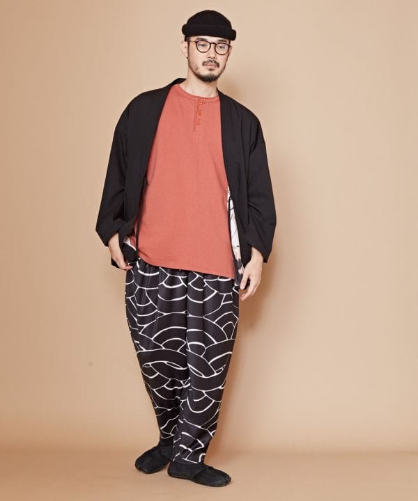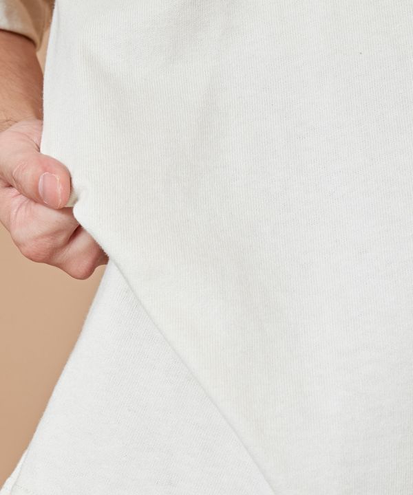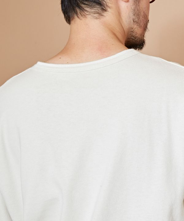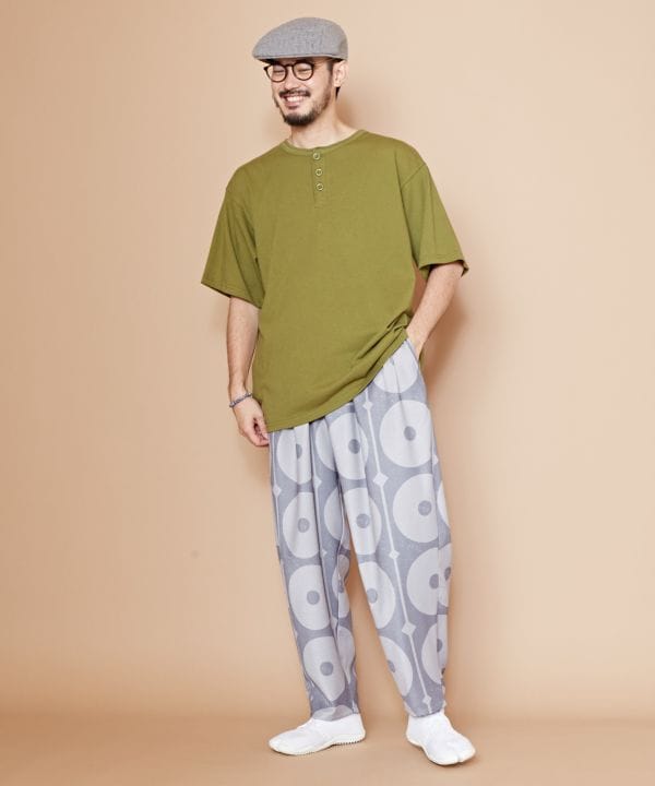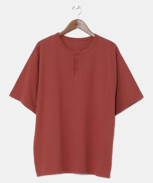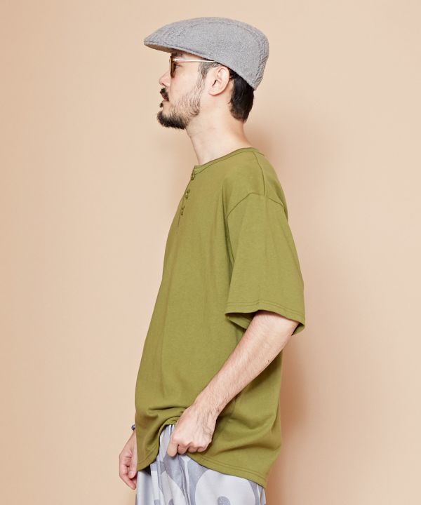 綿100%の肌触りのよい天竺生地を使用したTOP。1枚で着用できる中厚生地で、羽織の合わせトップスとしてもぴったり。シンプルなヘンリーネックTシャツ型なので、性別問わず着られます。
