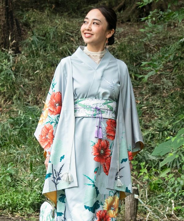 ケシの花を大胆にプリントした羽織。さらりとした着心地で、軽やかに着こなせる一枚。ばさっと羽織れる四角い形は着こなしやすく、お尻まですっぽり隠れます。袖口に裏地がついており、動くたび差し色が見えます。ケシの花言葉「陽気で優しい」「いたわり」「思いやり」。