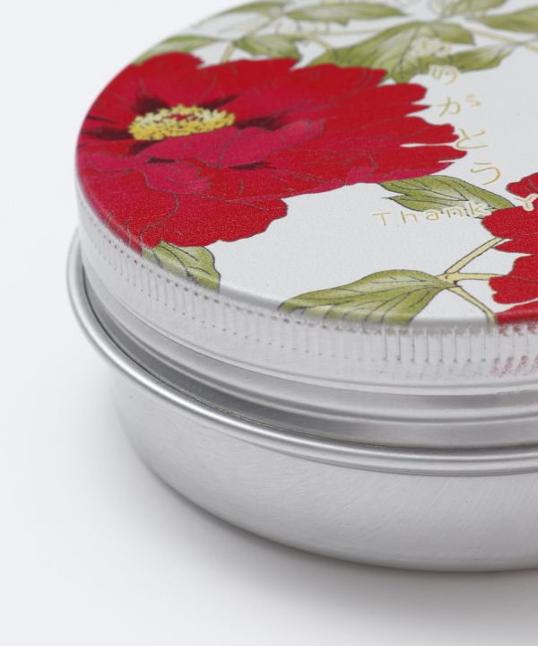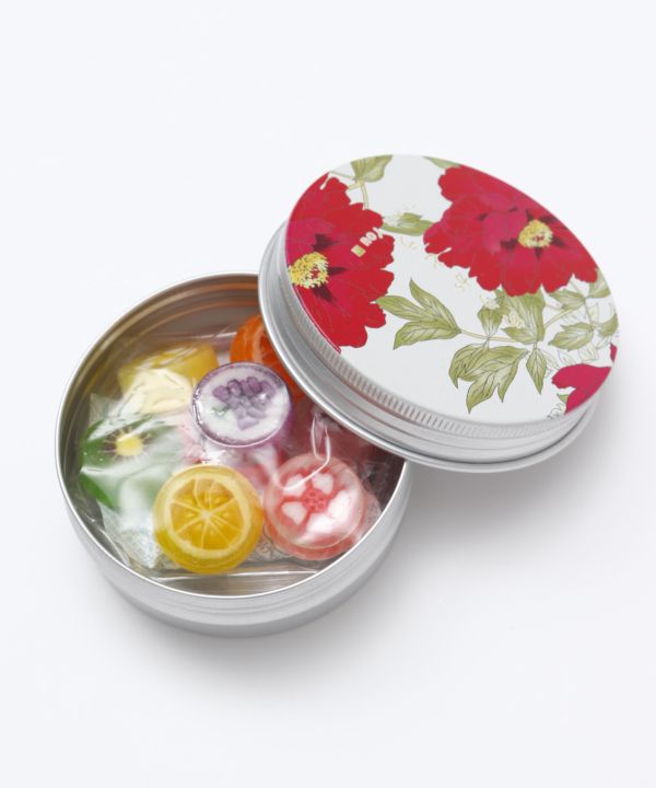 彩り鮮やかな花々がデザインされた飴缶。それぞれに感謝の言葉が入っているのでプレゼントに添えるのにぴったり。