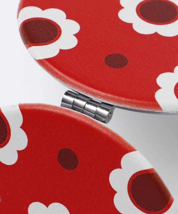 どこか懐かしさを感じる昭和レトロテイストデザインの手鏡。通常の鏡と拡大鏡がついているのでお化粧直しに便利な仕様です。