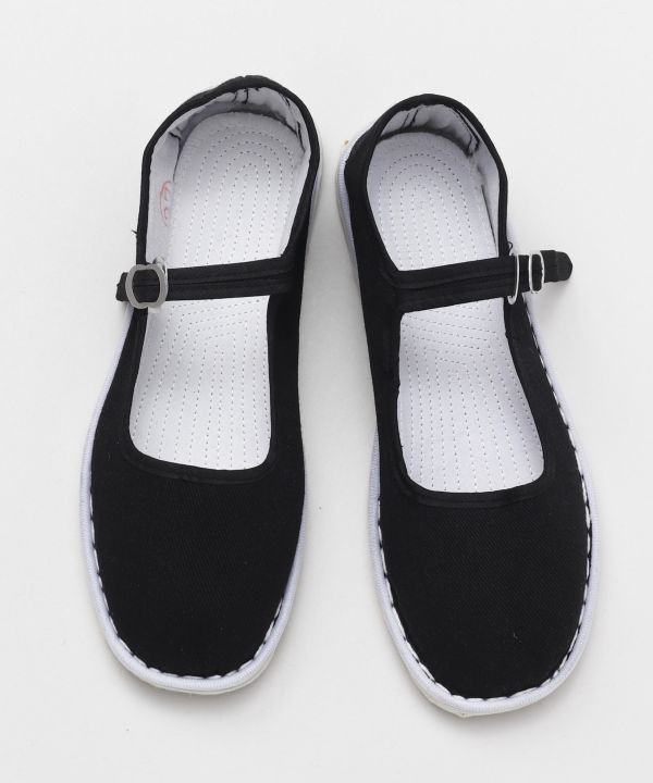 素足で履いてみてもらいたいカンフーシューズ。靴底は布を何枚も重ねて縫い込んであり強度は十分。足にフィットする為、長時間の着用でも疲れにくい。