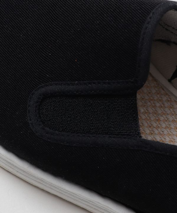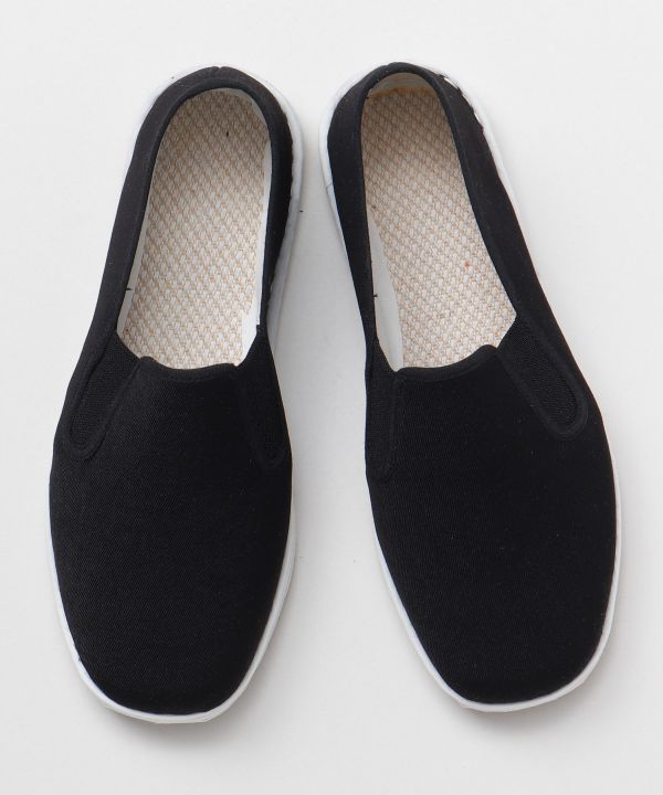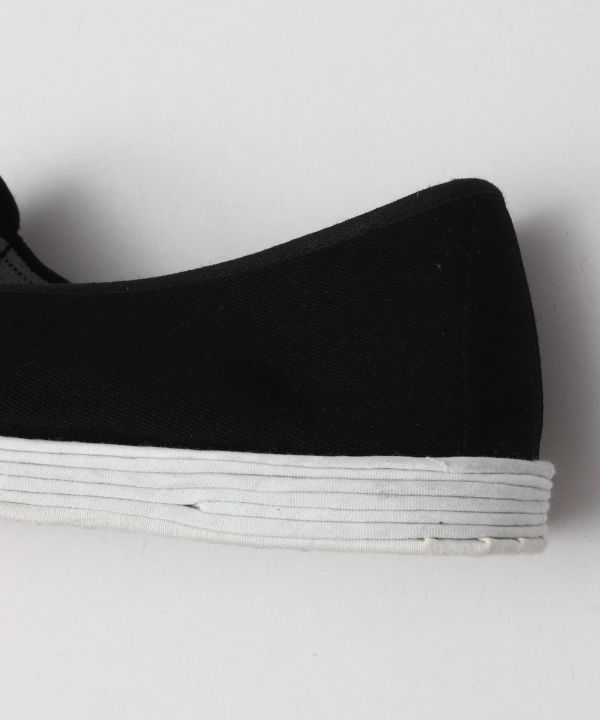 カンフー映画の主人公がはいてることで馴染みあるスリッポン型カンフーシューズ。香港映画ブームとともに日本でも広まった。中国武術をする際にも実際に使われるカンフーシューズは コーディネートの一部として日常に取り入れてみるのもおすすめ。ソールも全て綿で作られており、使わなくなった素材を重ね縫っている為擦り減ると柄が見えてくるかも。