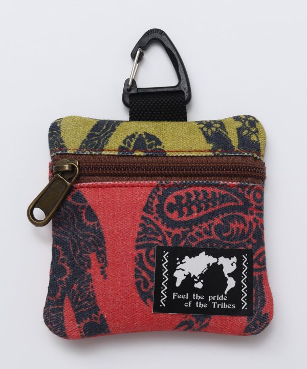 世界各地の伝統柄が施されたパース。ファスナーを開けると二層の仕切りになっており、ちょっとしたコインケースとしても使用可能。外側にも鍵が入るくらいのポケット付き。インドのプリント技法の木版ブロックプリントの模様をイメージしたデザイン。