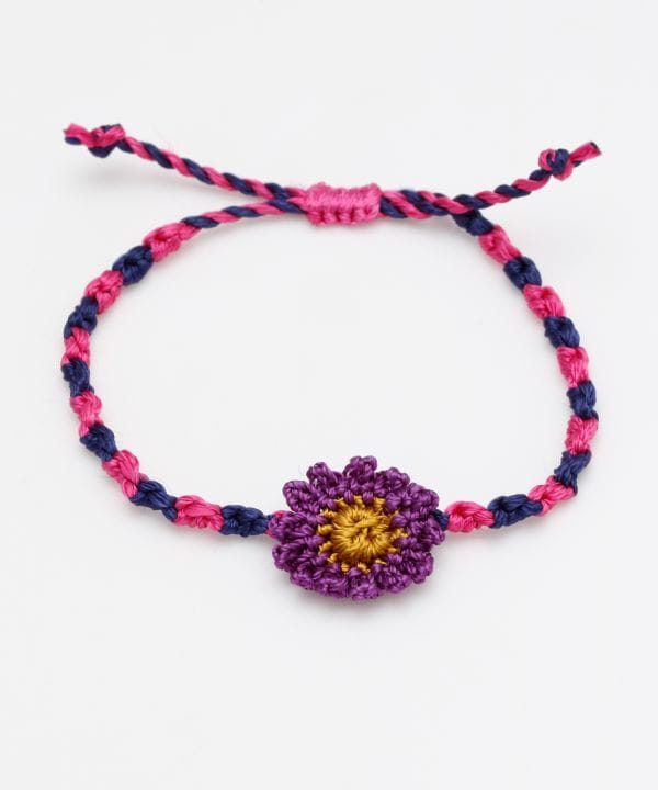 マーガレットのカラフルな色合いが目を惹くデザイン。マーガレットの花で想い人との運勢を占うように、密かなおまじないの意味が込められたミサンガ。マーガレットの花言葉「恋占い」「私を忘れないで」といった意味もあります。