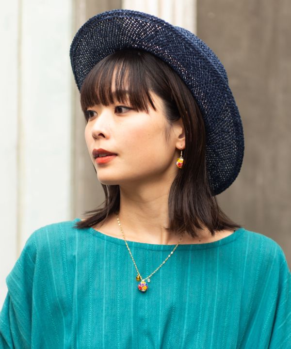 カラフルなフラワーボールのデザインが可愛いガラスネックレス。小ぶりなカラーチャームとの組み合わせが首元を明るく彩ります。