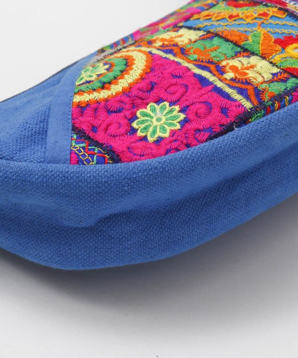 カンバディアと呼ばれるインドの伝統的なパッチワークの三日月型ショルダーバッグ。一つ一つが手作りで、下から上に向かって縫い込んでいくそう。人生も地上から天に向かって力強く生きられるようにと思いが込められている。同じものが一つとしてない、クラフトワークの温もりを日常に。
