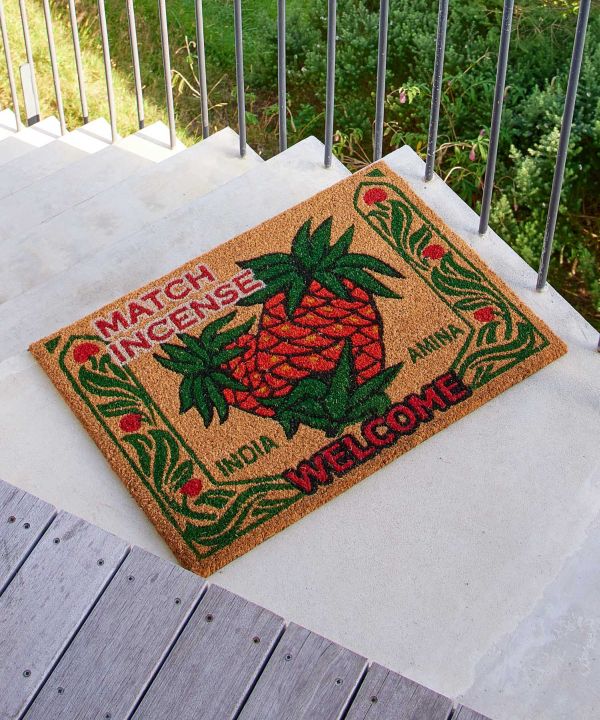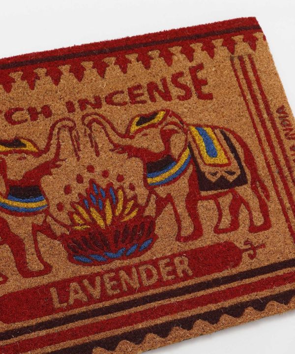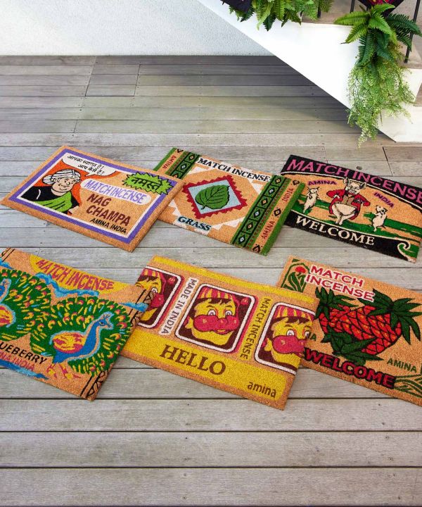 インドのレトロなマッチ箱デザインをモチーフにしたマッチ香デザインのコイヤーマット。キャッチーでどこか懐かしいビジュアルが玄関先に映えます。滑り止め付き。