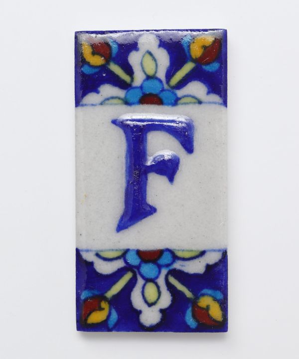 インドのブルーポタリーをオリジナル柄で表現。全てのアルファベットとスペースタイルを合わせて、ウェルカムボードや額に入れてインテリアとして空間を演出。陶器で作り上げられているので、表札にもおすすめ。