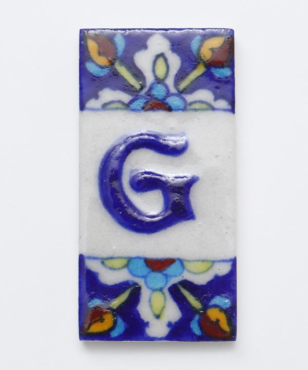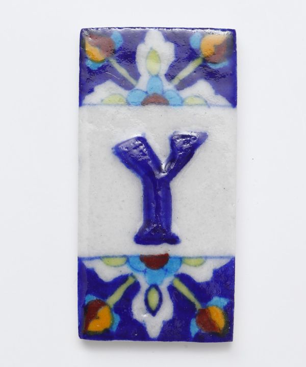 インドのブルーポタリーをオリジナル柄で表現。全てのアルファベットとスペースタイルを合わせて、ウェルカムボードや額に入れてインテリアとして空間を演出。陶器で作り上げられているので、表札にもおすすめ。