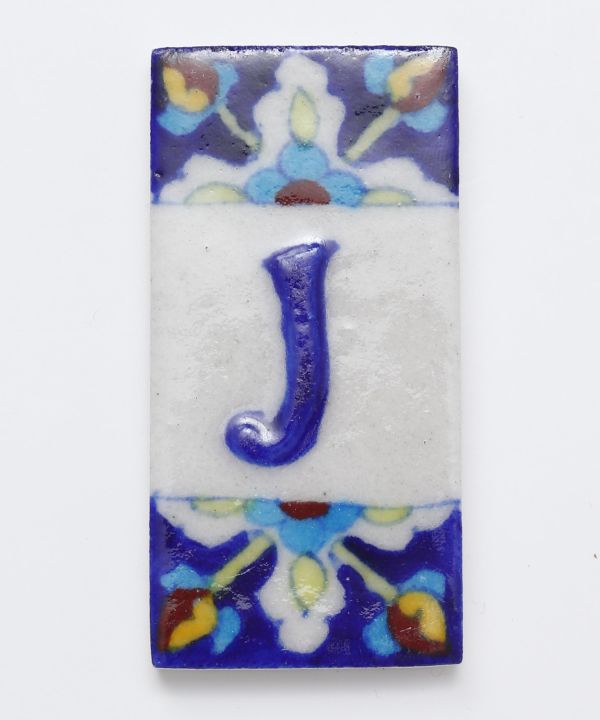 インドのブルーポタリーをオリジナル柄で表現。全てのアルファベットとスペースタイルを合わせて、ウェルカムボードや額に入れてインテリアとして空間を演出。陶器で作り上げられているので、表札にもおすすめ。
