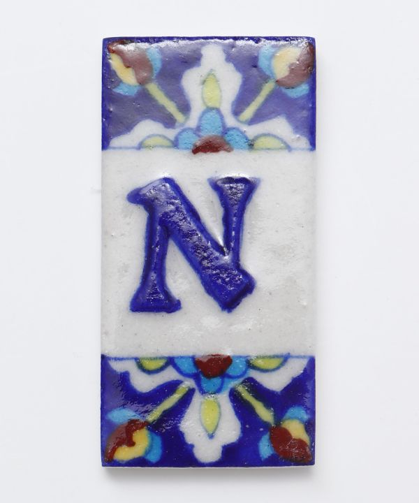 インドのブルーポタリーをオリジナル柄で表現。全てのアルファベットとスペースタイルを合わせて、ウェルカムボードや額に入れてインテリアとして空間を演出。陶器で作り上げられているので、表札にもおすすめ。