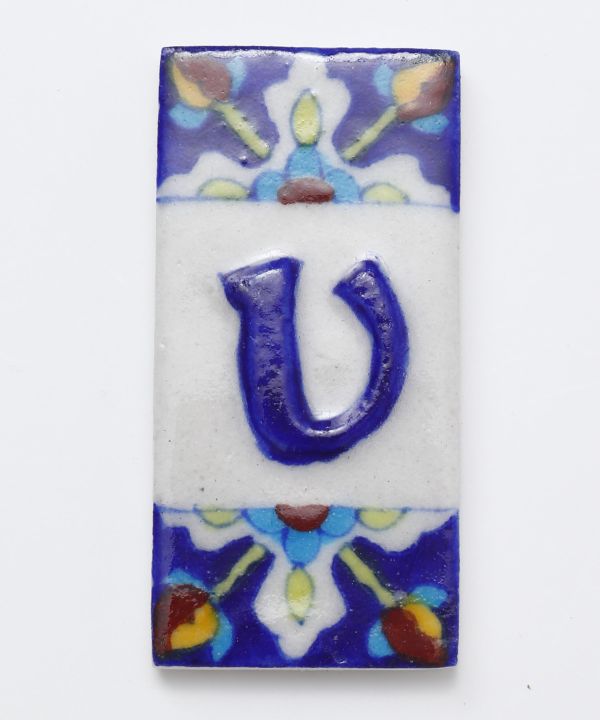 インドのブルーポタリーをオリジナル柄で表現。全てのアルファベットとスペースタイルを合わせて、ウェルカムボードや額に入れてインテリアとして空間を演出。陶器で作り上げられているので、表札にもおすすめ。