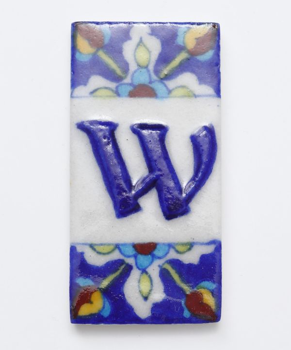 インドのブルーポタリーをオリジナル柄で表現。全てのアルファベットとスペースタイルを合わせて、ウェルカムボードや額に入れてインテリアとして空間を演出。陶器で作り上げられているので、表札にもおすすめ。