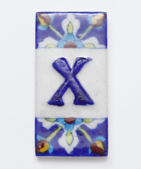 インドのブルーポタリーをオリジナル柄で表現。全てのアルファベットとスペースタイルを合わせて、ウェルカムボードや額に入れてインテリアとして空間を演出。陶器で作り上げられているので、表札にもおすすめ。