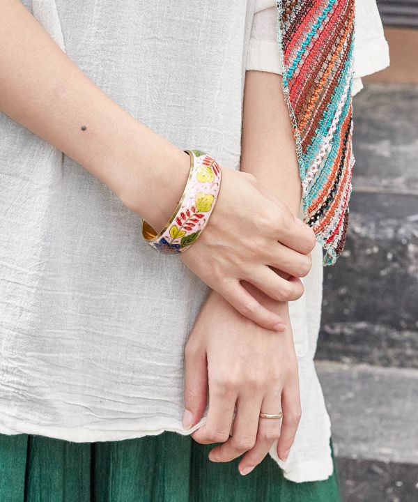 インドで古くから伝わり続けているバングル。ファッションとしてだけではなく、地域の風習に基づいた普遍的なもの。複数のバングルを重ね着けすることで、こすれ合いカチカチとなる音が邪気を祓い、パワーを吸収すると言われている。自分好みの組み合わせで楽しもう。