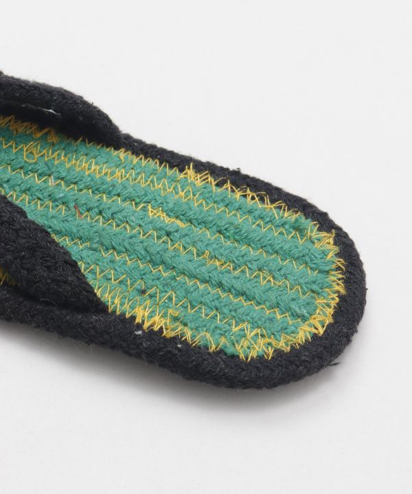 吸水性・通気性に優れているインド綿を使用した、肌触りの良いルームサンダル。繊維をリサイクルしてよりあげた糸を使うことで、素足にも環境にも優しいサステナブルなアイテム。3サイズでカラーバリエーションもユニセックスな5カラー展開。