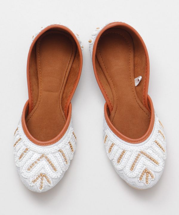 カラフルなビーズなどの刺しゅうで履きやすいジュッティ(ヒンディー語でサンダル)。夏にぴったりな、エキゾチックで華やかな足元に。