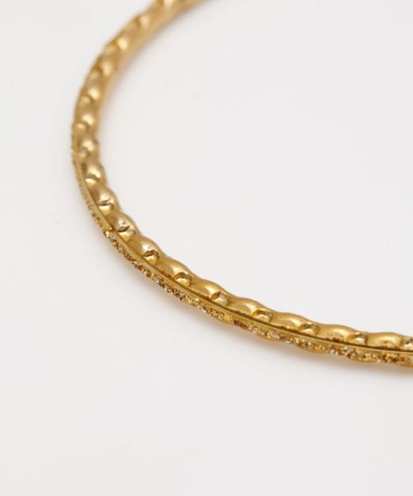 インドで古くから伝わり続けているバングル。ファッションとしてだけではなく、地域の風習に基づいた普遍的なもの。複数のバングルを重ね着けすることで、こすれ合いカチカチとなる音が邪気を祓い、パワーを吸収すると言われている。自分好みの組み合わせで楽しもう。