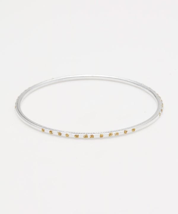 インドで古くから伝わり続けているバングル。ファッションとしてだけではなく、地域の風習に基づいた普遍的なもの。複数のバングルを重ね着けすることで、こすれ合いカチカチとなる音が邪気を祓い、パワーを吸収すると言われている。自分好みの組み合わせで楽しもう。