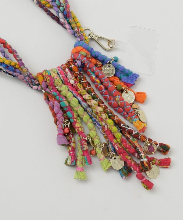 インドのリサイクルファブリックから丁寧に手作りされています。デリーで女性支援の活動の一環として商品作りを行っています。ショルダータイプのスマートフォンストラップ。付属のカードをお持ちのスマートフォンケースに挟んでご使用ください。※商品の特性上、柄や色味が一つ一つ異なるアソート商品です。※写真は一例です。※一点をお届けします。