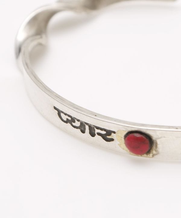 ツイストされたデザインでヒンディー語の願いが刻まれたお守りバングル。愛、お金・裕福、幸せ、希望・夢、平和…自分の願いを込めていつも身に着けてみては。シンプルなデザインだが存在感抜群なアイテム。願いによってカラーストーンも変わる。