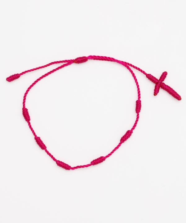 メキシコのロザリオモチーフのミサンガ。ワンポイントのクロスも付いていて、お守りとしてもおすすめ。