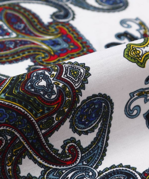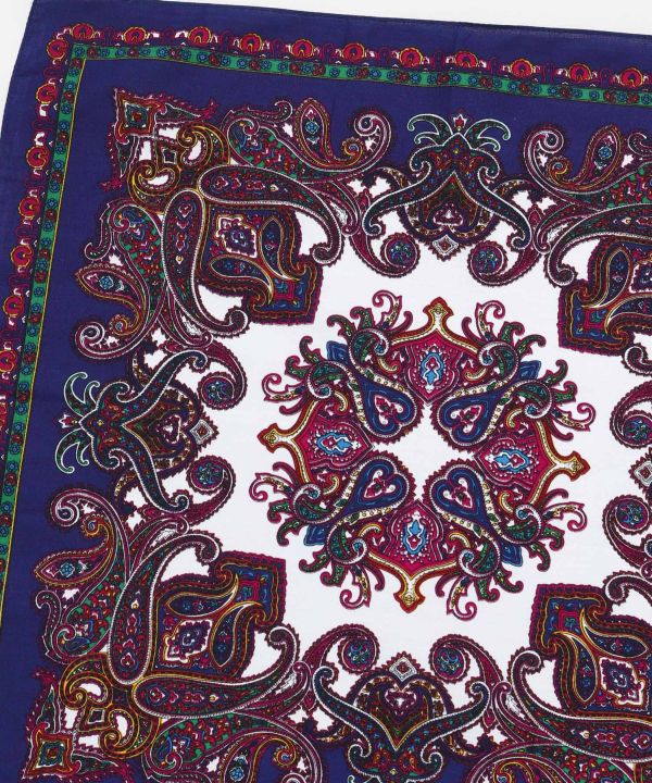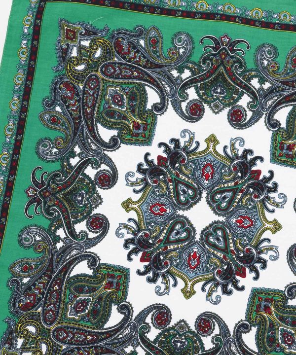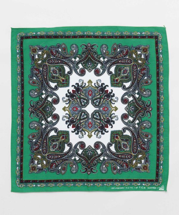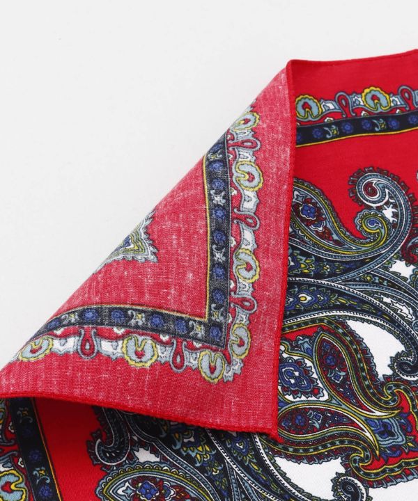 はっきりとした色使いの繊細なペイズリー柄バンダナ。エキゾチックな雰囲気がインパクト大。実用的な使い方からファッションアイテムまで様々な使い道があるからこそ自分らしいデザインを選ぼう。