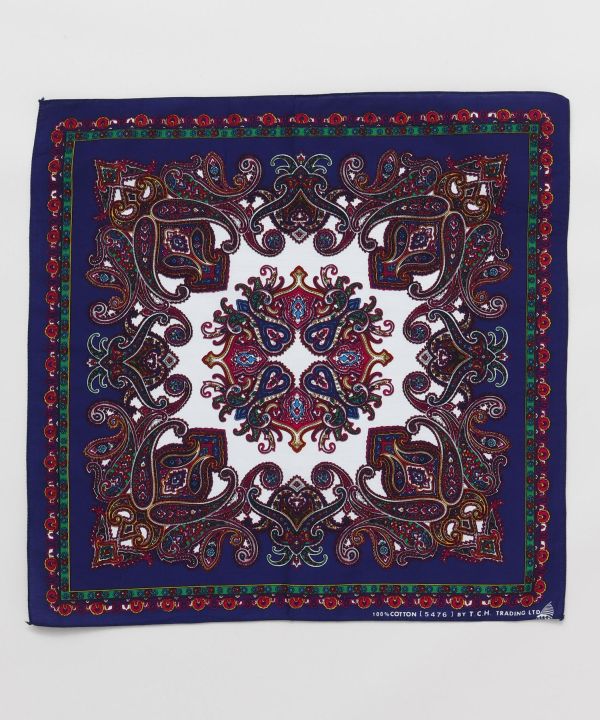 はっきりとした色使いの繊細なペイズリー柄バンダナ。エキゾチックな雰囲気がインパクト大。実用的な使い方からファッションアイテムまで様々な使い道があるからこそ自分らしいデザインを選ぼう。