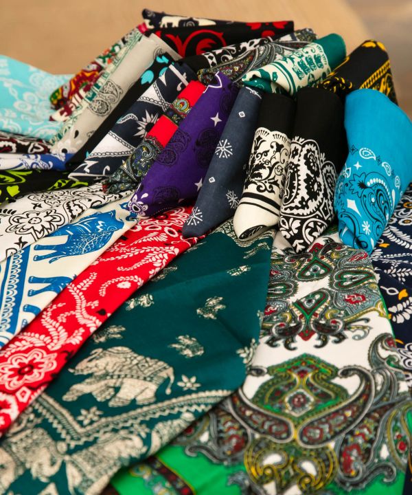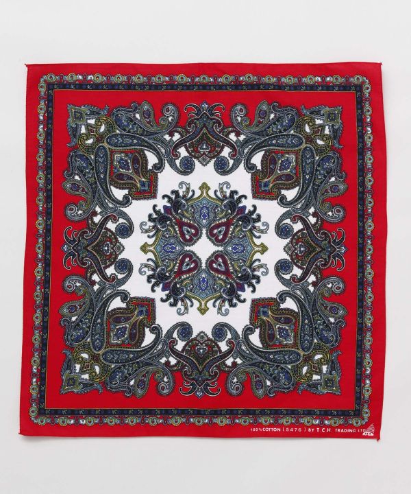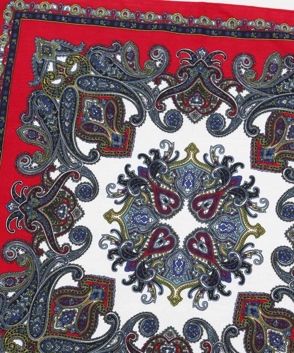 はっきりとした色使いの繊細なペイズリー柄バンダナ。エキゾチックな雰囲気がインパクト大。実用的な使い方からファッションアイテムまで様々な使い道があるからこそ自分らしいデザインを選ぼう。