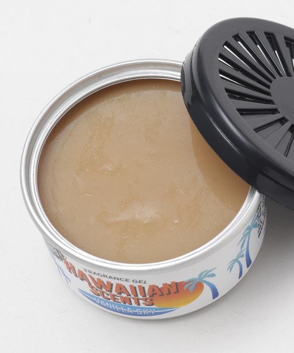 ハワイアンセンツシリーズ。GELフレグランス缶。ハワイのやんちゃなメンズをイメージしたデザイン。メンズを意識して「フレグランス」ではなくあえて「SCENTS」に。英語のメッセージは「言葉にはできないハワイの空間(空気感)をあなたのお部屋に。」