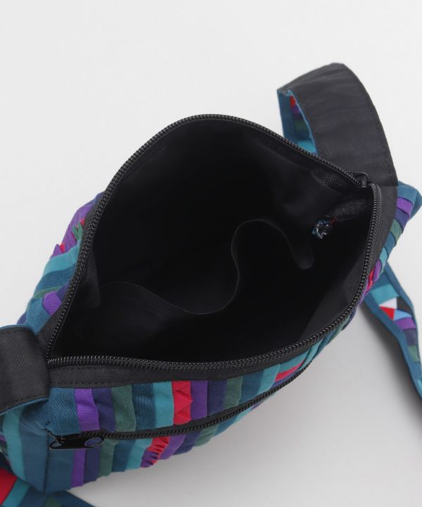 【タイ直輸入】華やかさでカラフルなリス族のファブリックを使ったバッグ。リス族のファブリックは、ストライプや三角形が重なった、カラフルな幾何学模様が特徴です。スマホや財布、ポーチが入るサイズ感で、マチも付いているので普段使いもしやすいです。コーデを一気に明るくしてくれるバッグです。