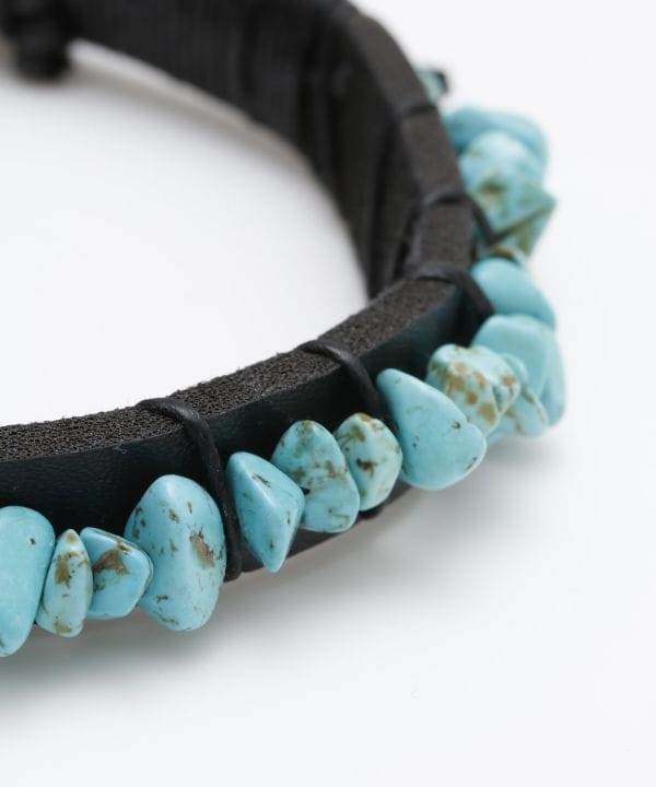 【タイ直輸入】ヴィンテージ感漂うビーズと合皮を組み合わせたブレスレット。ネイティブアメリカンな雰囲気を演出してくれるアイテム。重ね付けはもちろん、サイズ調節ができるので女性にもおすすめ。