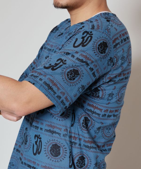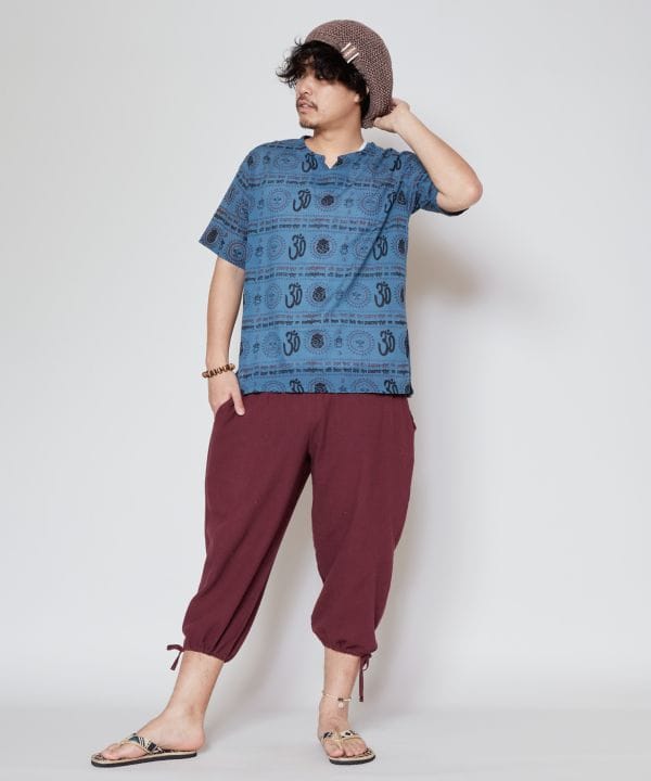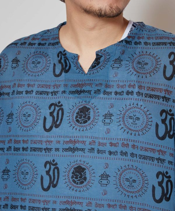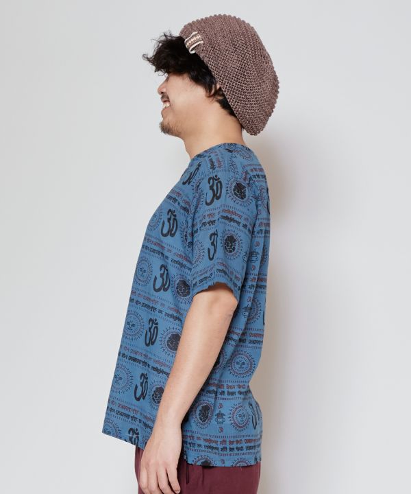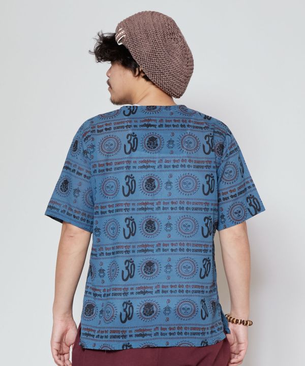 【タイ直輸入】一面にオーム柄がプリントされているメンズトップス。さらっと見た目も涼しげに着用できる。