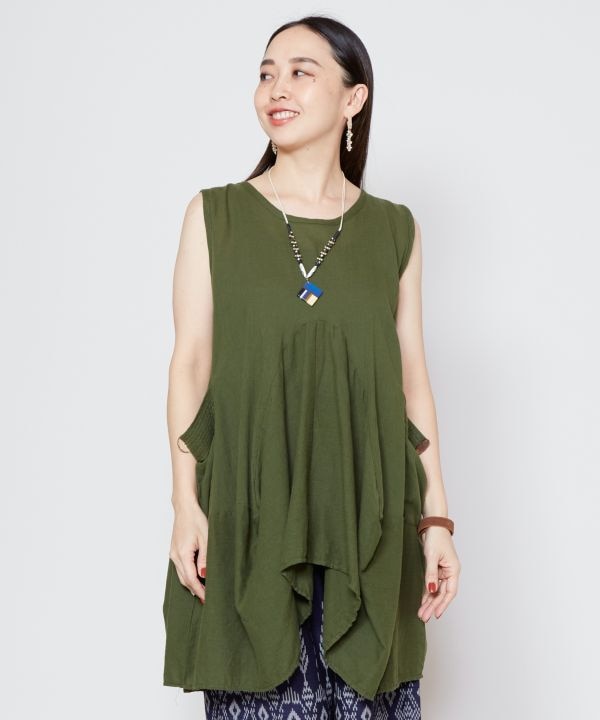 【タイ直輸入】サイドにビッグポッケトがある変形トップス。タイコットン100%の抜群の気触りが魅力。