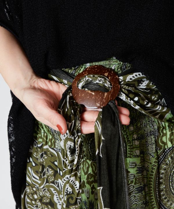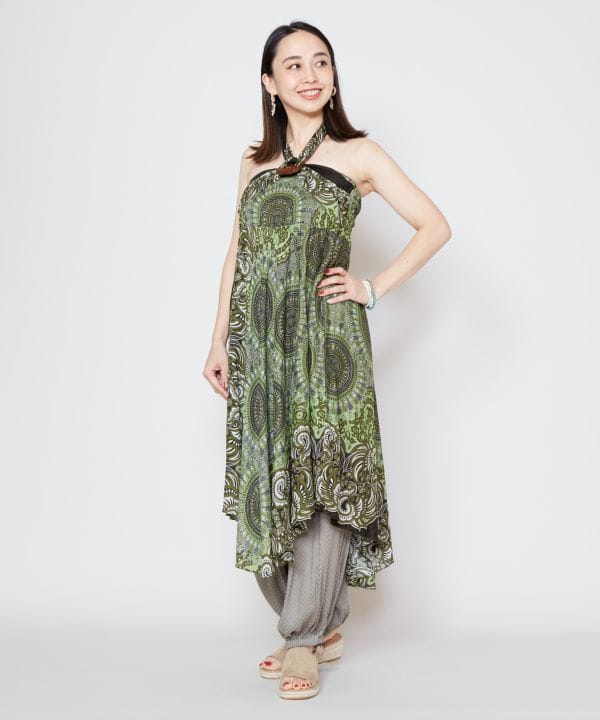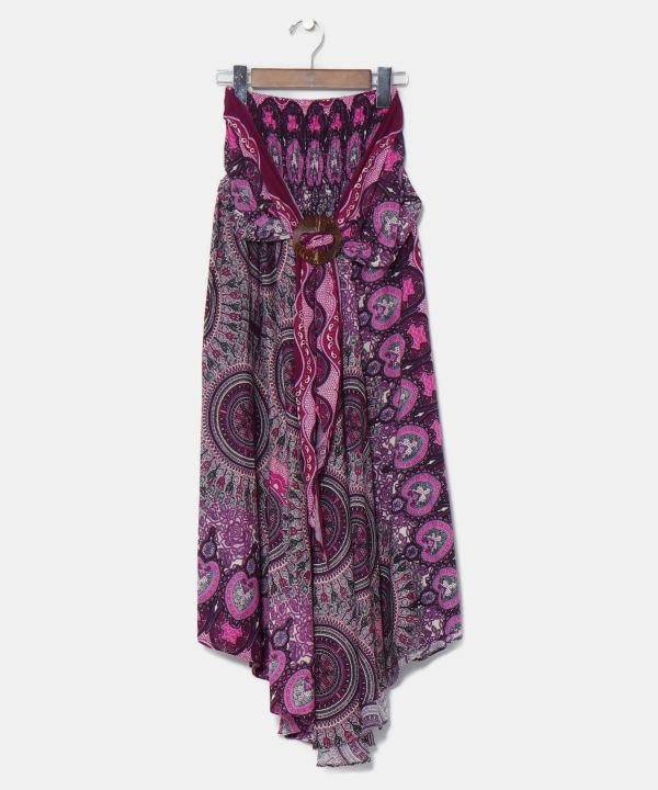【タイ直輸入】スカートとワンピースの2WAY仕様。サイドの布をウエスト周りに結べばスカートのシルエットがワンランクアップ。胸元まで上げればワンピースとしても着用できる。裏生地なし。
